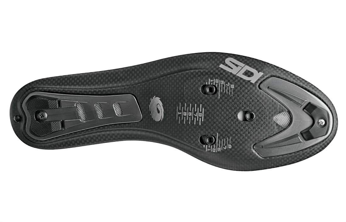 La suela de carbono C-Boost SRS ofrece una rigidez excepcional, optimizando la transferencia de potencia sin comprometer la comodidad. Además, cuenta con insertos reemplazables en la punta y el talón que protegen el carbono en las zonas más propensas al desgaste, aumentando la durabilidad al caminar. El dispositivo de retención del talón ajustable refuerza la parte superior de la copa del talón y mejora el ajuste, cerrando la parte posterior del zapato de forma segura alrededor del talón del ciclista.